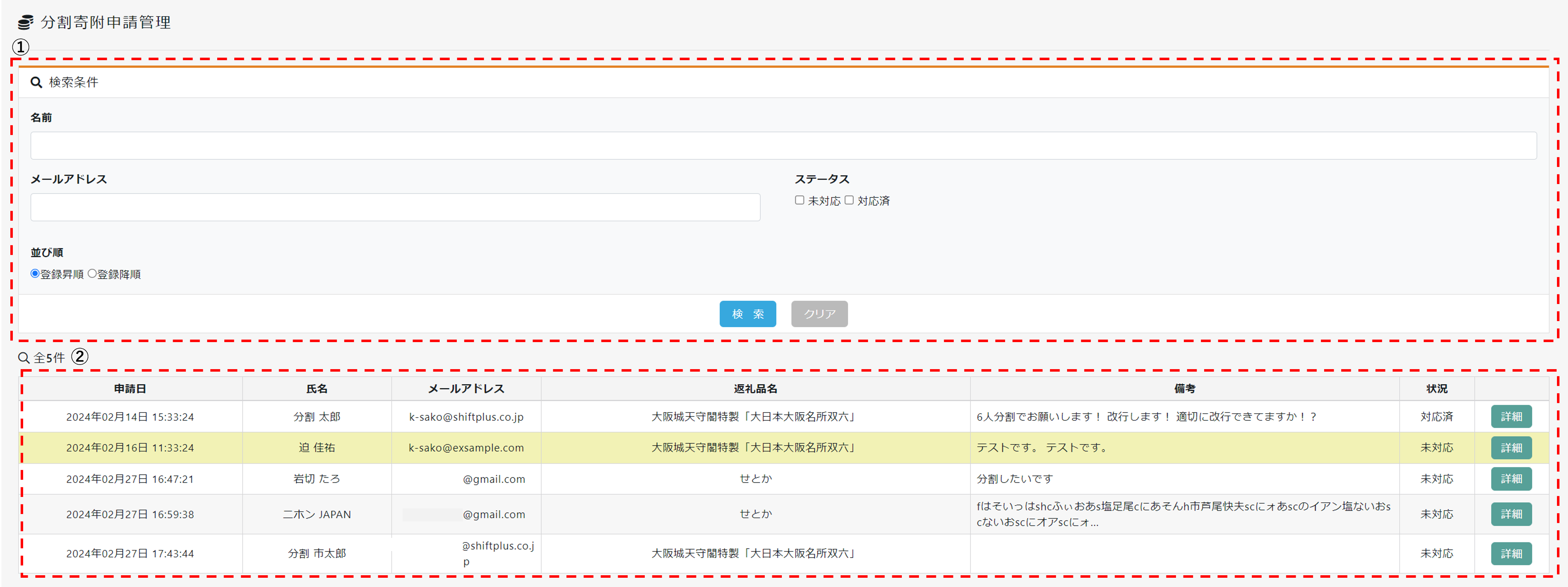 分割寄附管理を選択した寄附者様の詳細を管理できます。